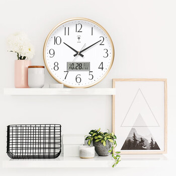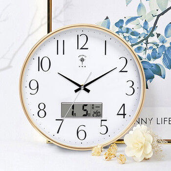 北极星(POLARIS)挂钟客厅钟表万年历现代石英钟时尚日历时钟创意挂表金色33cm
