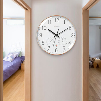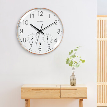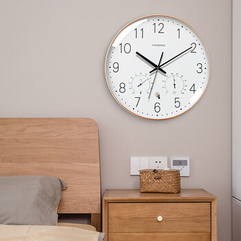 Timess挂钟 电波钟客厅钟表温湿度计时尚简约石英钟表挂墙卧室时钟 36cm