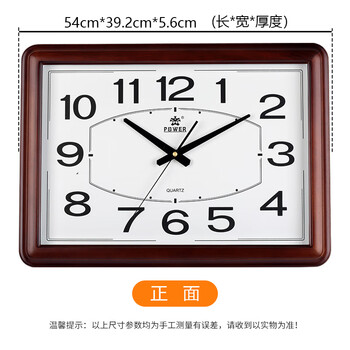 POWER霸王挂钟 长54cm客厅大号方形办公挂墙中式简约木挂表1801CKS