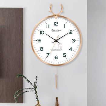康巴丝(Compas)挂钟客厅摆钟创意时钟 卧室石英钟表挂墙 C3245 白色 36cm直径