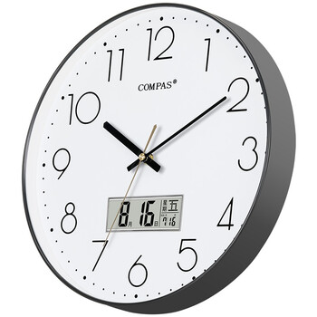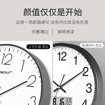 康巴丝(Compas)挂钟客厅钟表 万年历简约石英钟表挂墙时钟 C3242Y 钢琴黑 28cm