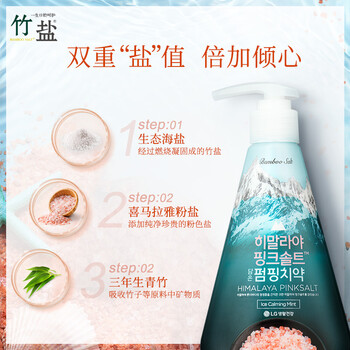 竹盐LG派缤按压式牙膏粉盐成人美白除臭清新冰澈薄荷+清幽花香285g*2