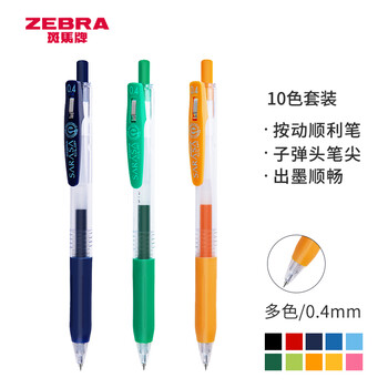 斑马牌(ZEBRA)JJS15中性笔 0.4mm按动签字笔 学生彩色手账笔重点标记笔 JJS15-10CA 10色套装