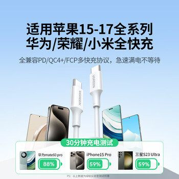 绿联双头Type-C数据线PD100W/88W超级快充ctoc适用华为荣耀小米苹果17/16e/15平板笔记本电脑车载1.5米