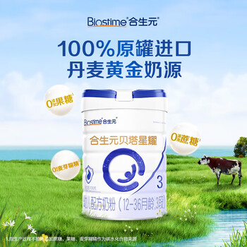 合生元(BIOSTIME)贝塔星耀 幼儿配方奶粉 3段(12-36个月) 700g*2 新国标
