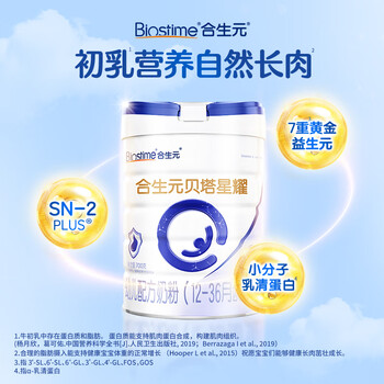 合生元(BIOSTIME)贝塔星耀 幼儿配方奶粉 3段(12-36个月) 700g*2罐七重益生元