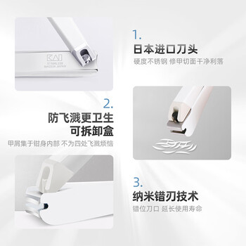 貝印进口防甲屑崩溅指甲剪不锈钢指甲钳刀(白色)中号约7.4cm