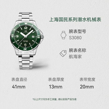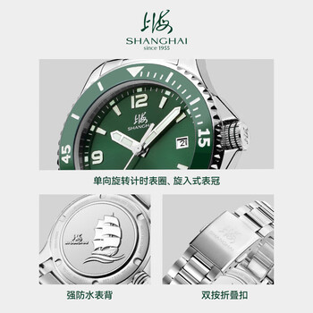 上海(SHANGHAI)手表男款 男士自动机械表 国民系列 夜光水鬼潜水表 SH3080N-1蓝