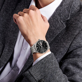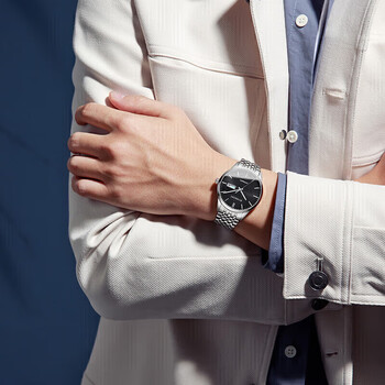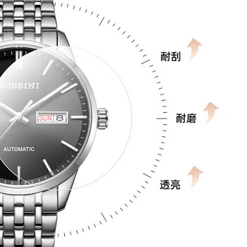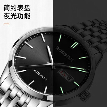 罗西尼(ROSSINI)手表男自动机械表黑盘钢带生日礼物国表商务夜光防水 5220099