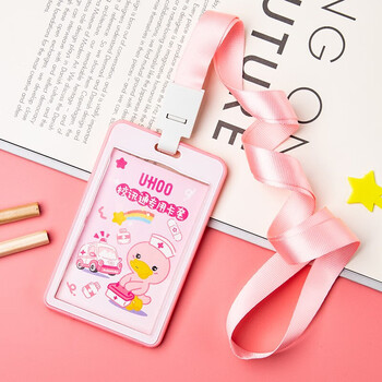 优和(68.3*109.8mm)校讯通卡套 加厚工作牌6086 学生幼儿园接送卡套 公交门禁饭卡卡套带挂绳粉色竖式 6个