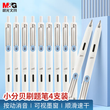 晨光(M&G)文具【刷题笔】小分贝消音高颜值0.5mm黑色按动速干中性笔 大容量考试笔 4支装 AGPJ9607A