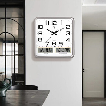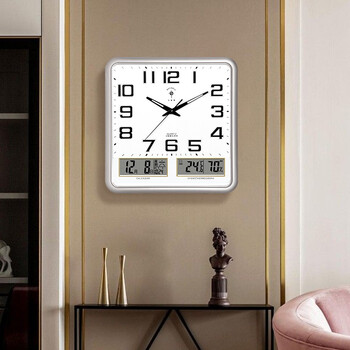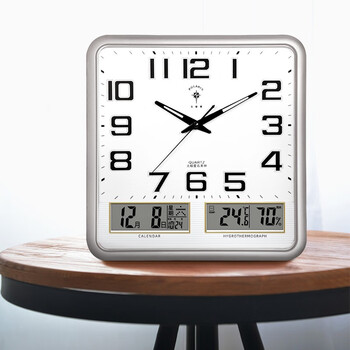 北极星(POLARIS)挂钟万年历温湿度计创意客厅日历挂表钟表夜光石英钟37*36cm