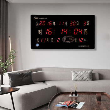 康巴丝挂钟数码万年历电子钟客厅方形大电子钟表铝合金边框挂表318黑