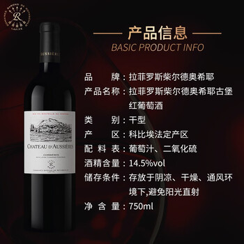 法国拉菲(LAFITE)罗斯柴尔德奥希耶古堡红葡萄酒 750ml 单瓶装