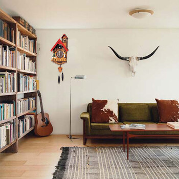 丽声(RHYTHM)客厅报时挂钟创意布谷鸟时钟儿童木制表挂墙65cm装饰表4MJ417-R06