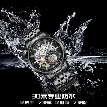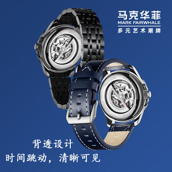 马克华菲(MARK FAIRWHALE)手表男士镂空夜光全自动机械表飞轮腕表生日礼物送男友6350