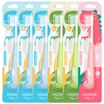 皓齿健3-12岁儿童小恐龙卡通软毛牙刷换牙期长牙期6支套装小刷头舌苔刷