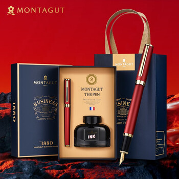 梦特娇(MONTAGUT)【马年礼物】钢笔美工笔墨水礼盒套装弯尖笔商务书法练字笔礼遇红色1.0mm