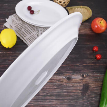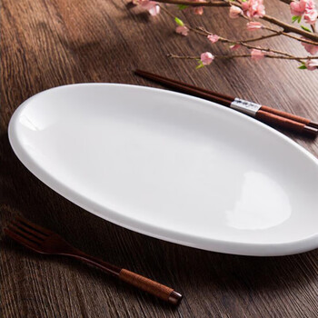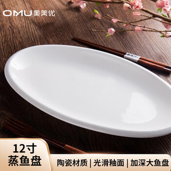 奥美优蒸鱼盘 加深大鱼盘蒸鱼盘菜盘子易清洗纯白百搭陶瓷餐具