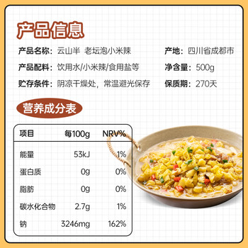 云山半泡小米辣500g 野山椒 自制泡凤爪调料老坛泡菜1斤瓶装