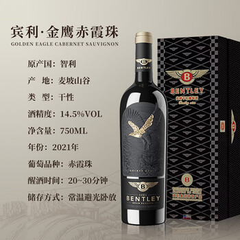 宾利(BENTLEY)智利原瓶进口红酒礼盒特级珍藏赤霞珠干红葡萄酒750ml*1年货送礼