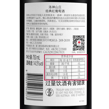 洛神山庄澳洲奔富 经典干红葡萄酒 750ml*6整箱装 正品行货一体标 木塞装