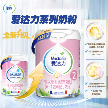 爱达力(Nactalia)法国原装爱达力系列较大婴儿配方奶粉2段800g*6(6-12月)新国标