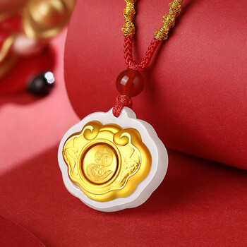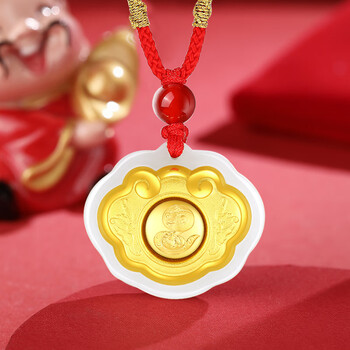 蒂蔻(Tico)本命年十二生肖蛇金镶玉吊坠镶嵌和田玉平安扣小孩款宝宝周岁礼物
