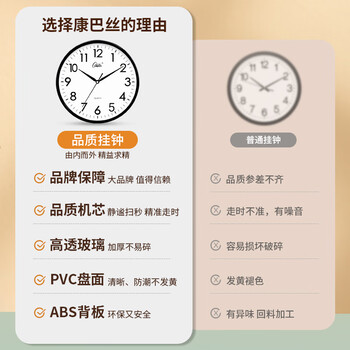 康巴丝(Compas)挂钟 创意简约钟表客厅石英钟表挂墙时钟 c2855 咖木色 26cm直径