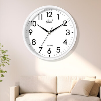 康巴丝(Compas)挂钟客厅静音走时简约石英钟表挂墙时钟 c2855 白色 26cm直径