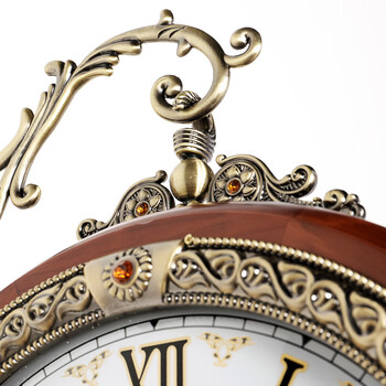 汉时(Hense)客厅双面挂钟欧式挂表时尚创意石英钟表两面时钟HDS05棕色45cm