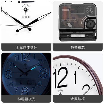 北极星(POLARIS)挂钟 客厅创意石英钟表现代办公室日历壁钟夜光特色数字时钟50cm