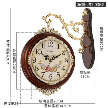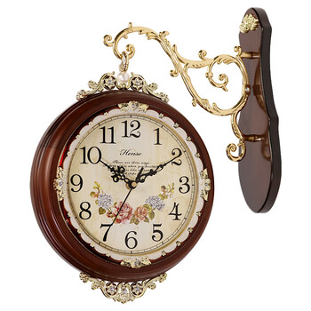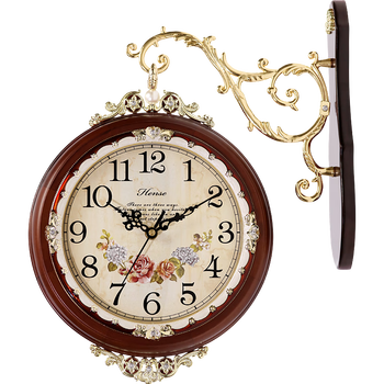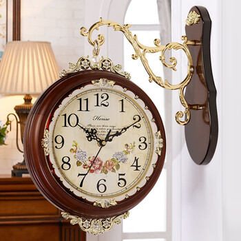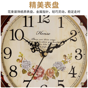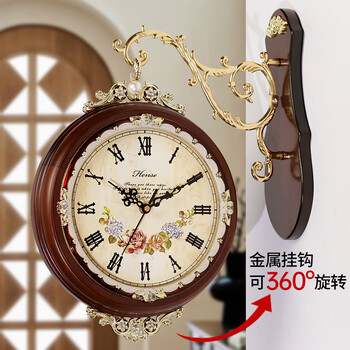 汉时(Hense)双面挂钟客厅挂墙时钟创意装饰挂表轻奢石英钟表HDS01木色42cm