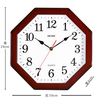 汉时(Hense)中式客厅挂钟复古八角时钟简约挂表经典石英钟表HW52红木色29cm