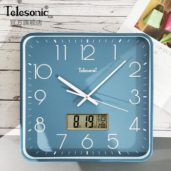 天王星(Telesonic)方形挂钟钟表客厅时钟万年历挂表石英钟简约日历卧室表挂墙33cm
