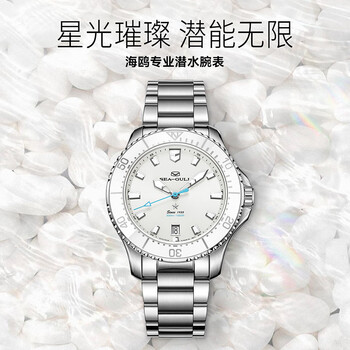 海鸥(SEAGULL)手表男士自动机械表 海洋pro男士手表 生日礼物潜水表1211白盘钢