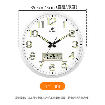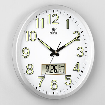 POWER霸王钟表夜光挂钟简约挂表电子万年历客厅石英时钟35cm银BW24093