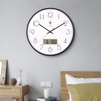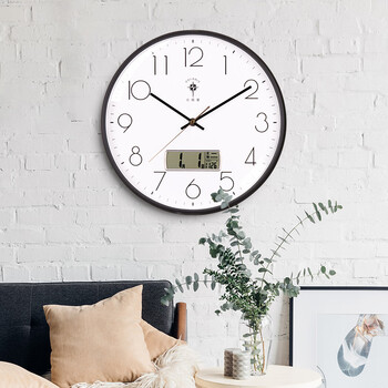 北极星(POLARIS)挂钟客厅餐厅家用时尚简约钟表自动对时电波钟 日历款