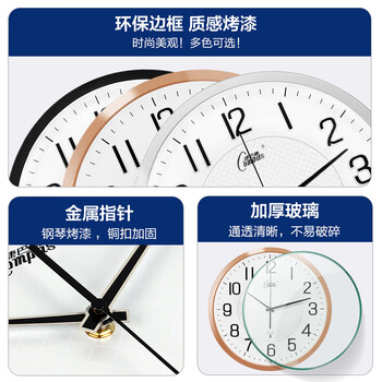康巴丝(Compas)挂钟自动对时电波钟客厅教室考场静音时钟表挂墙C6891 闪银 35cm