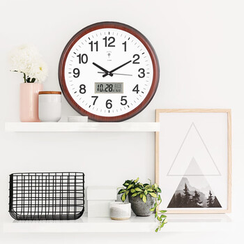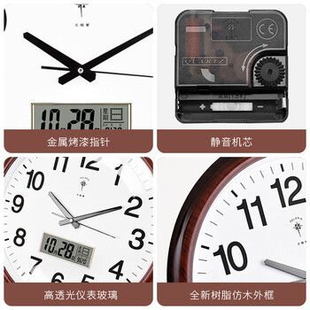 北极星(POLARIS) 挂钟客厅时尚简约挂钟日历显示LED 2901石英钟红木色新年焕新礼