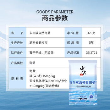 雪天自然海盐320g*5 【未加碘】0添加食用盐 家用调味品调料 原盐洁净
