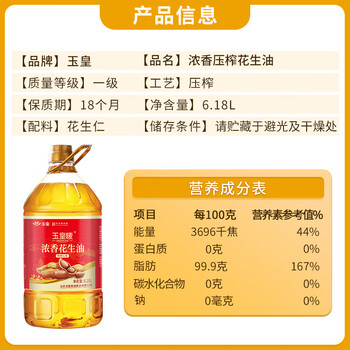 玉皇【中华老字号】物理压榨花生油6.18L中华老字号 实惠装年货团购