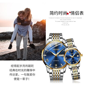 欧利时(OLEVS)情侣对表一对手表男款全自动机械表女表防水夜光时尚潮流生日礼物