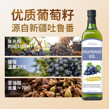 蓓芯园 葡萄籽油1L 口味清淡健康 中式家用烹饪炒菜烘焙食用油