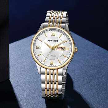 罗西尼(ROSSINI)情侣手表 生日礼物商务双历石英表白盘钢带618573/618574
