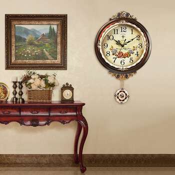 北极星(POLARIS)挂钟创意时尚摆钟欧式田园仿古客厅石英钟表实木时钟挂表12英寸