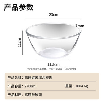 拜杰玻璃碗水果沙拉碗玻璃盆和面盆透明碗打蛋盆烘焙碗沙拉碗2700ML