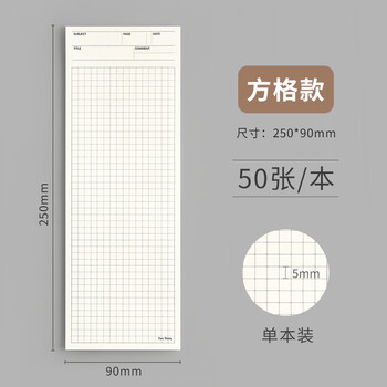 狮洛德 简约超长250*90mm便签纸可撕便条无粘性ins可爱韩版学生记重点用便签本留言本50张 网格款
