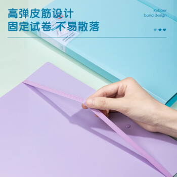 得力(deli)A3备考试卷夹文件夹 长押夹绑带设计 学生试卷作业简历资料票据收纳册 办公文件保护63245混色