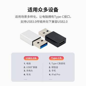 Snowkids USB转Type-C转接头电脑USB转USB-C接口车载充电线转换器OTG适用于苹果1516 17数据线华为耳机手机